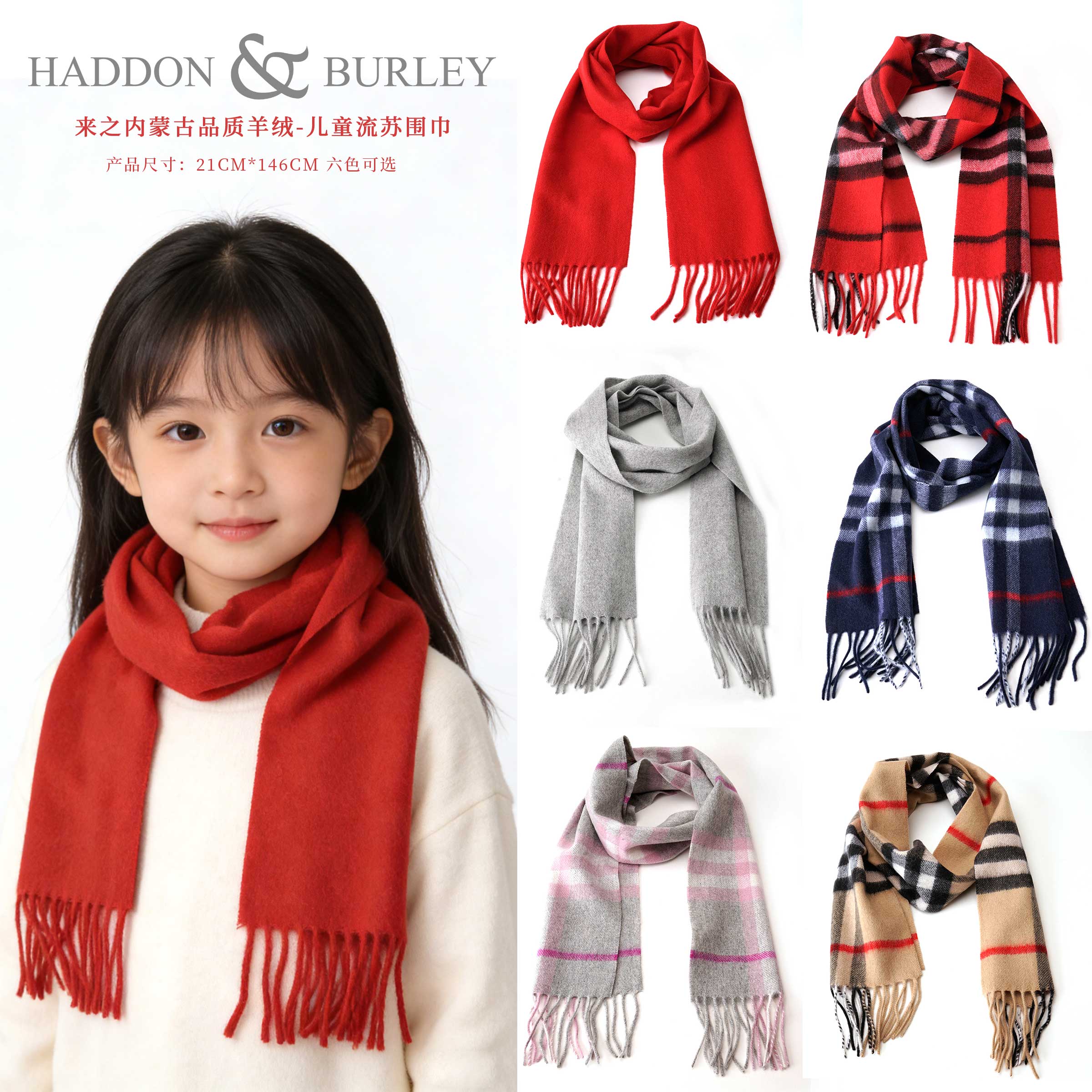 新年送礼优选「HADDON&BURLEY 儿童羊绒流苏围巾」
